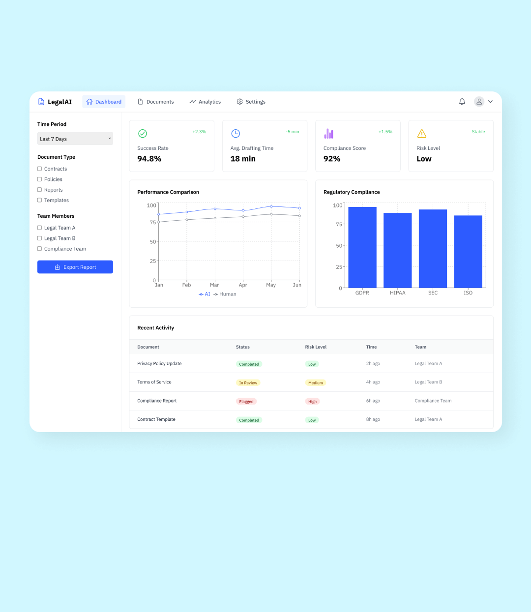 Our low-code AI platform powers smart document generation with built-in compliance intelligence, customizable workflows, and secure data handling designed for legal and enterprise-grade needs.